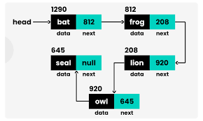 A linked list is another example whose main advantage is storing data without needing a lot of consecutive memory while allowing for reasonably fast searches, insertions, and deletions. Each node of the linked list has a value stored at that node and a field that points to the next node in the list. Source: https://adacomputerscience.org/concepts/struct_linked_list